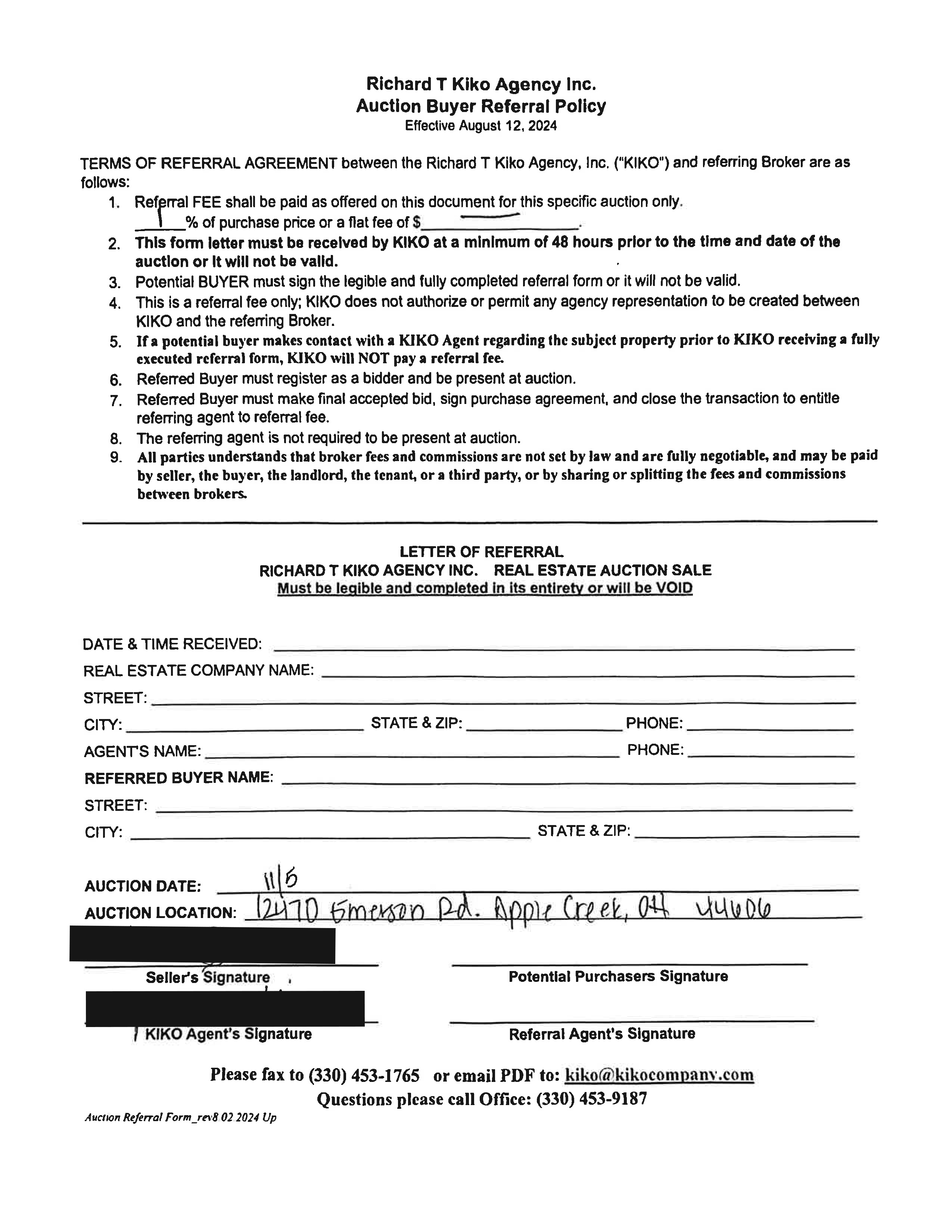 10% down auction day, balance due at closing. A 10% buyer’s premium will be added to the highest bid to establish the purchase price. Any desired inspections must be made prior to bidding. All information contained herein was derived from sources believed to be correct. Information is believed to be accurate but not guaranteed.